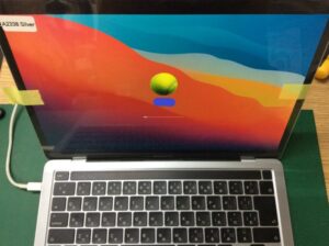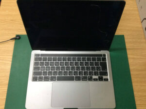 最近とても多いのですが、今回もMacBookPro 13インチ2020年のM1モデルの液晶修理です。