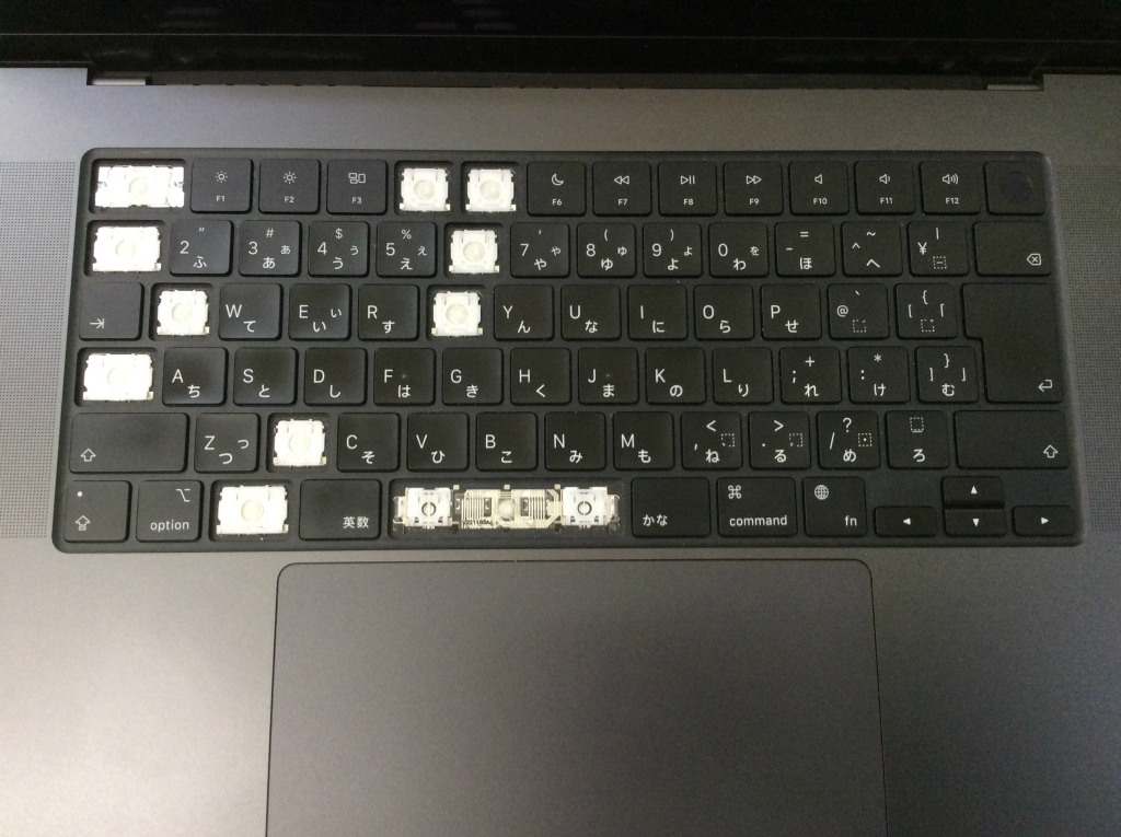 MacBook Pro 16インチ 2024 M4 キーボードに液体をこぼした[キートップ清掃]