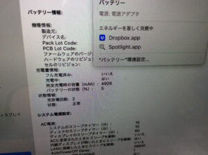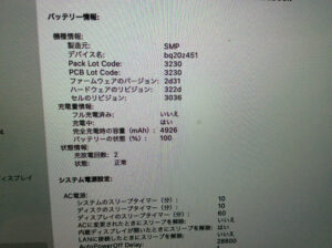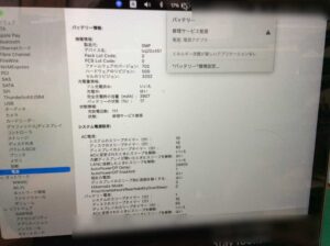 しかしバッテリーステータスは修理サービス推奨のメッセージが出ておりましたので、恐らくバッテリー劣化による性能低下が原因でバッテリーからの給電がまともに出来ない状態と思われます。