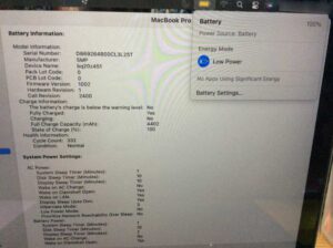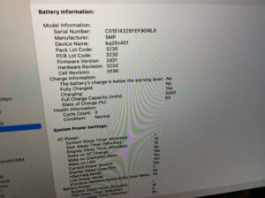 到着後の確認では本体側の問題は確認できませんでしたが、バッテリーステータスは正常でも満充電容量が80%近くまで落ちていたので交換時期ではあります。